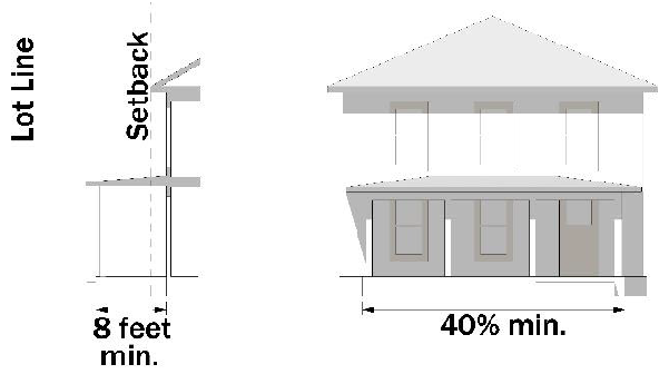 A front porch or stoop is required, except for multifamily buildings with more than 8 units.