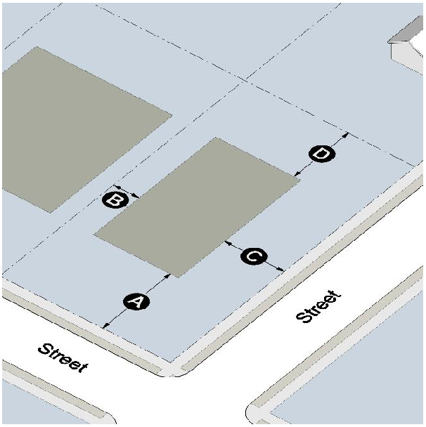Minimum distance between buildings: 20 feet.