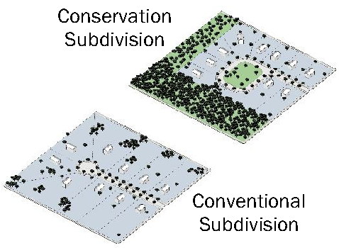 To preserve green space and unique or sensitive natural resources such as lakes or streams, flood hazard areas, wetlands, streams, steep slopes, woodlands, wildlife habitats, historic features, and unique topography.