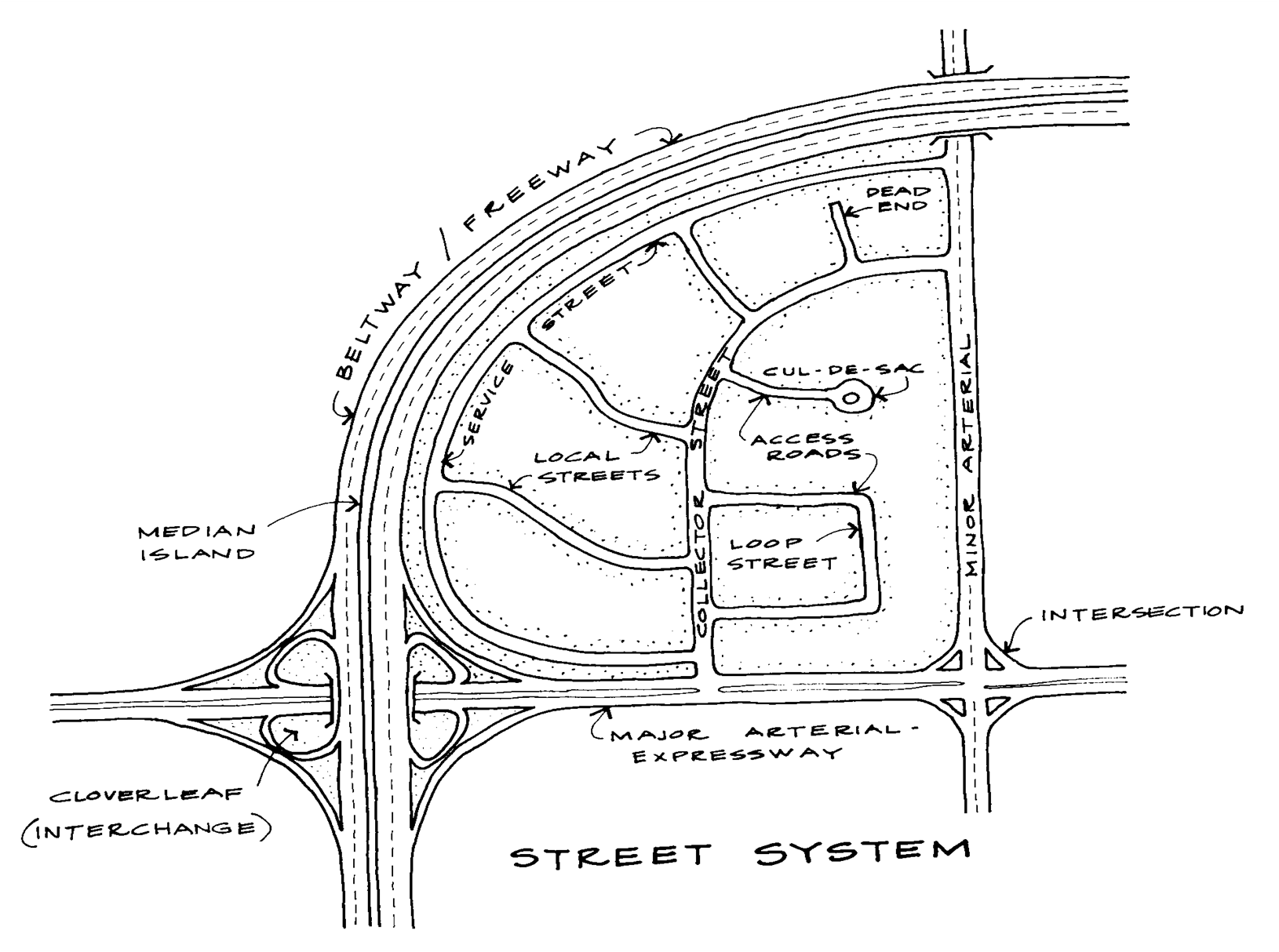 Collector Streets: Streets that provide access to activity centers from residential areas. Their purpose is to collect traffic from streets in residential and commercial areas and distribute the traffic to the arterial system.
