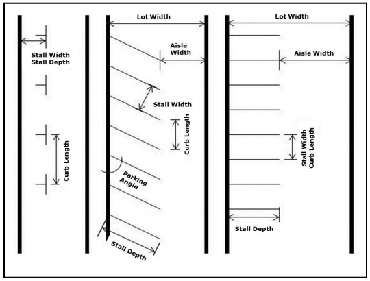 The distance from the intersection of the lines extended from the edge of pavement or surface of each street for the various road classifications are shown in Figure 5.02.02(B).