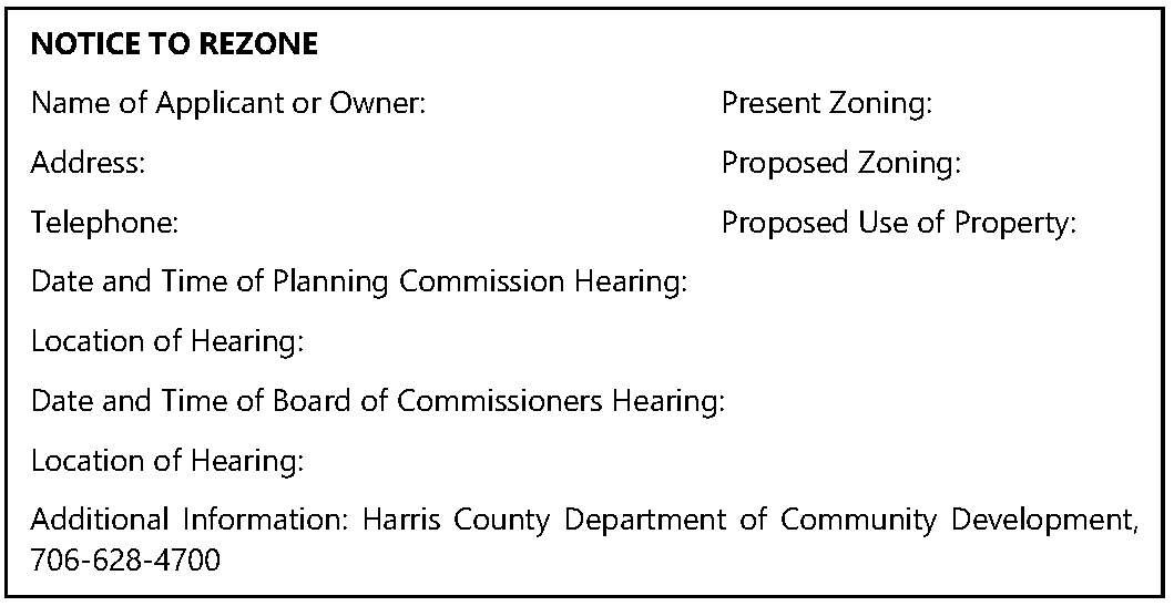 Harris County acknowledges that a Georgia Certified Broadband Ready Community has an affirmative duty to notify the Georgia Department of Community Affairs (DCA) of any changes to the information submitted as part of its application; and