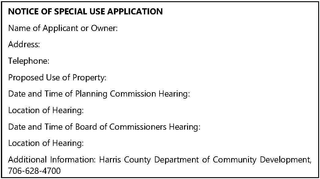 For purposes of petition under Title 5 of the O.C.G.A., the Chair of the Board of Commissioners, Planning Commission, and/or Board of Zoning Adjustment, as appropriate, is authorized to accept service on behalf of the Respondent. The Chair to the Board of Commissioners is authorized to accept service of process on behalf of Harris County as opposite party.