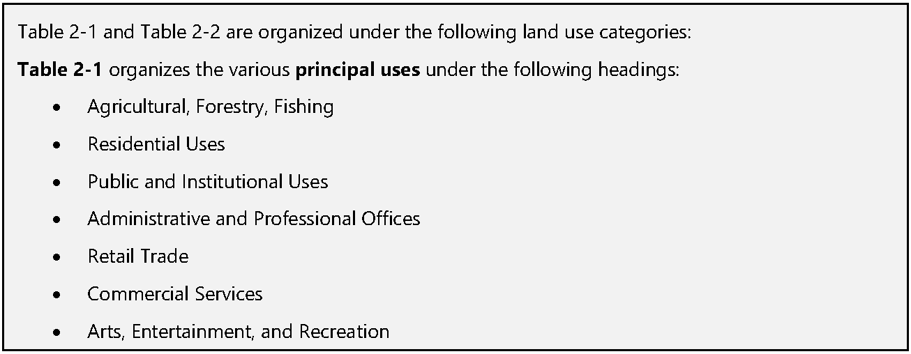 Table 2-2 Accessory and Temporary Use Table
