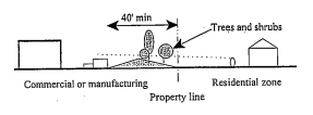 | parking lot to sideor rear of building | 20 feet | 0 feet | 15 feet | 20 feet | 0 feet | 15 feet |