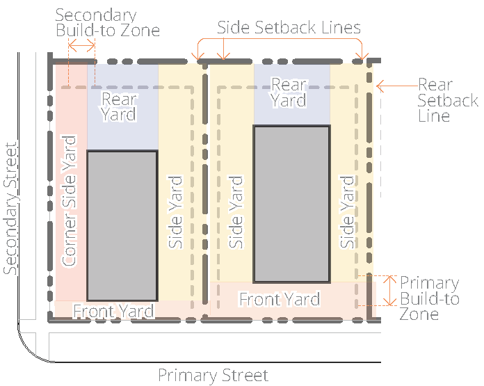 Corner and through lots that abut a primary street (refer to 2.2 Zoning Map) shall have the Front property line on that primary street.