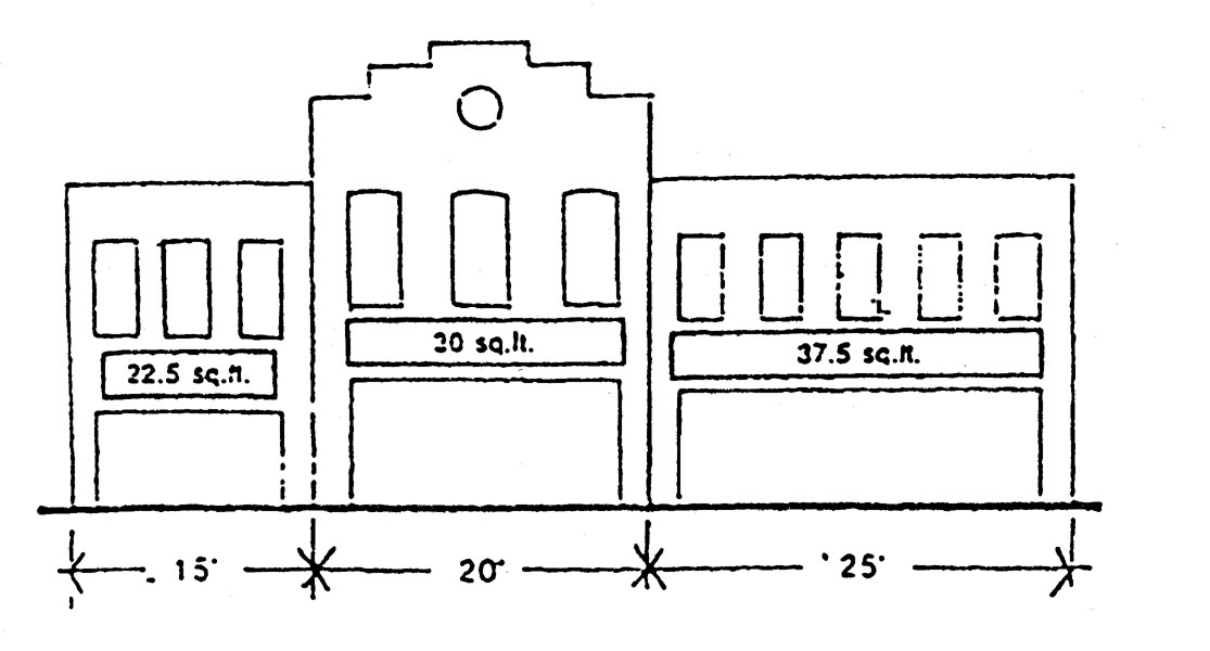 Calculation of maximum total sign area in B-2 and M-1 zones for each one lineal foot of building frontage × 2 = sign area (in square feet).