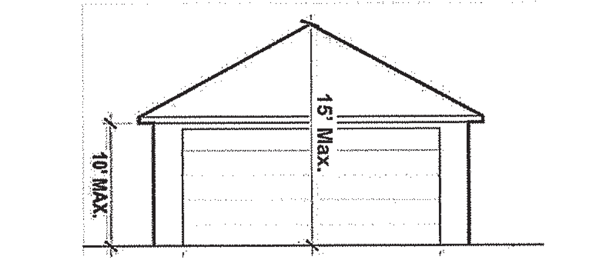 The maximum height of any detached accessory building or structure shall not exceed fifteen (15) feet as measured from the floor of the structure to the peak of the roof, but the maximum height of the sidewall shall not exceed ten (10) feet in height, unless otherwise required by this title. (See Figure 17.04.120.1: Accessory Building Height)