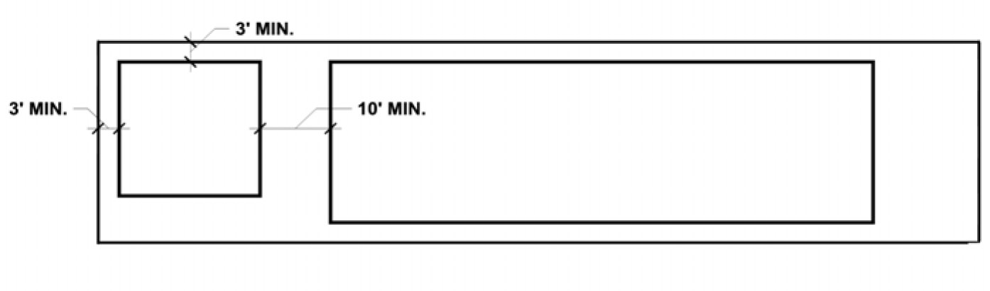 Open to the Sky. A deck shall be considered open to the sky for purposes herein, if the floor permits rain water to drop through the planking and drain to the earth below. Landscape fabric may be used to cover the earth beneath the deck so long as the fabric is porous. There shall be a minimum space of one-quarter inch between floor boards or planks which shall measure no more than six inches in width. All decks shall be subject to minimum side, front, and back yard restrictions with a maximum size of five percent of total lot area.