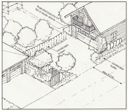 | Yard Use | Pedestrian only. No vehicle parking or drives in front yard if abutting an improved alley way | Vehicle Parking. Pedestrian path to rear entry. If abutting an improved alley way |