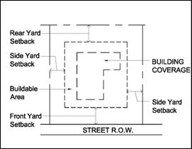 Buildable area. The portion of the lot that may be occupied by buildings and excludes all required front, side and rear setback areas, minimum open space and lot coverage requirements, and other areas where structures are prohibited.