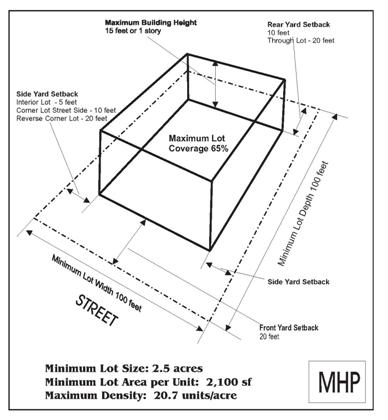 Requirements for parking, landscaping, trash enclosures, fences, walls, outdoor storage, etc. and residential design standards are provided in Chapter 18.50 residential regulations.