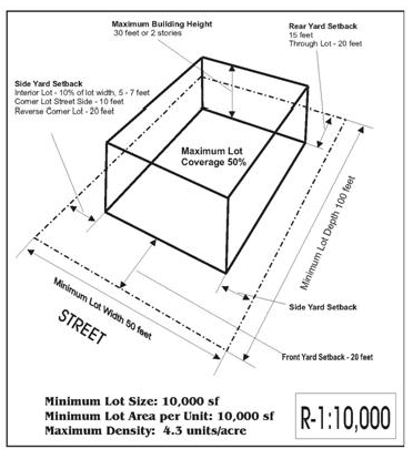 Development standards. Development within the R-1:10,000 zone shall comply with the following development standards: