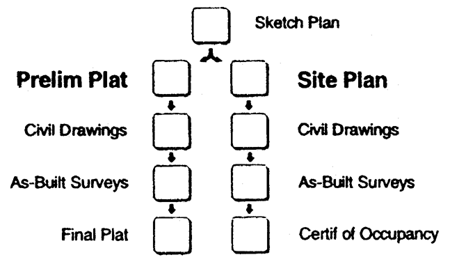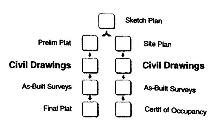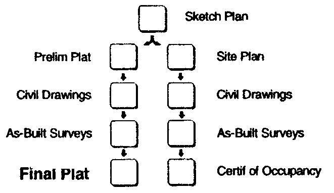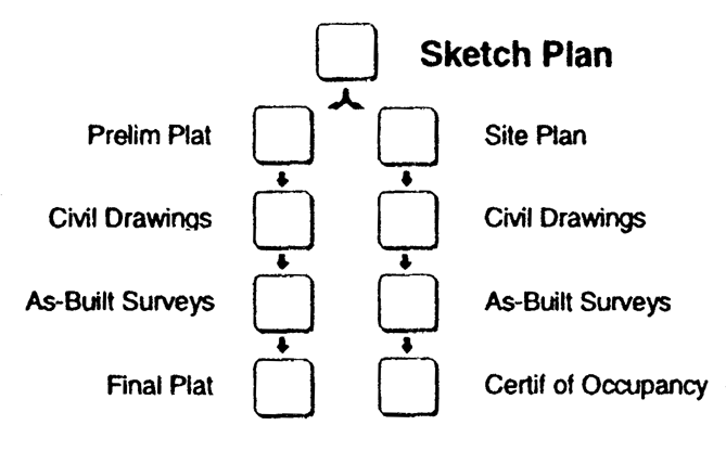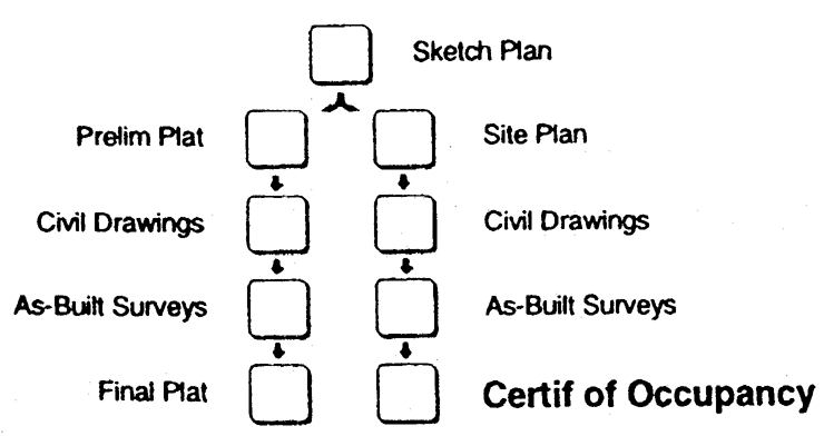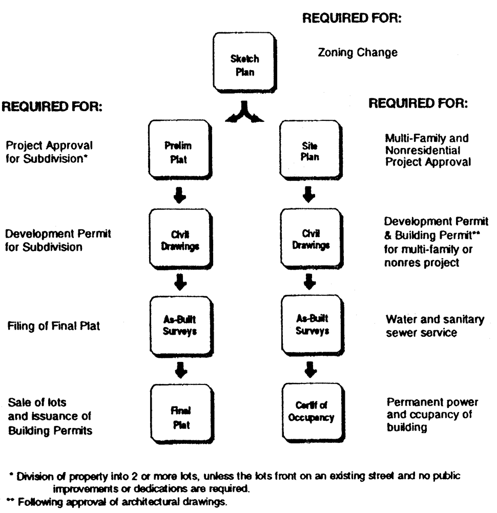 in the land development approval and construction process, described below.