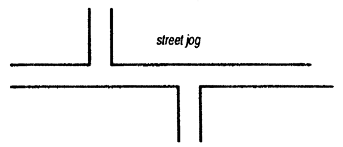 Street jog: the incidence where two (2) streets or two (2) portions of a single street are separated
