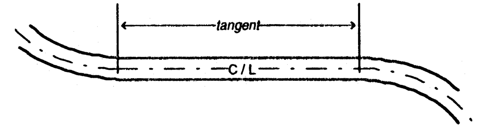 Tangent: the straight-line distance between the ending on one curve of a line (center line