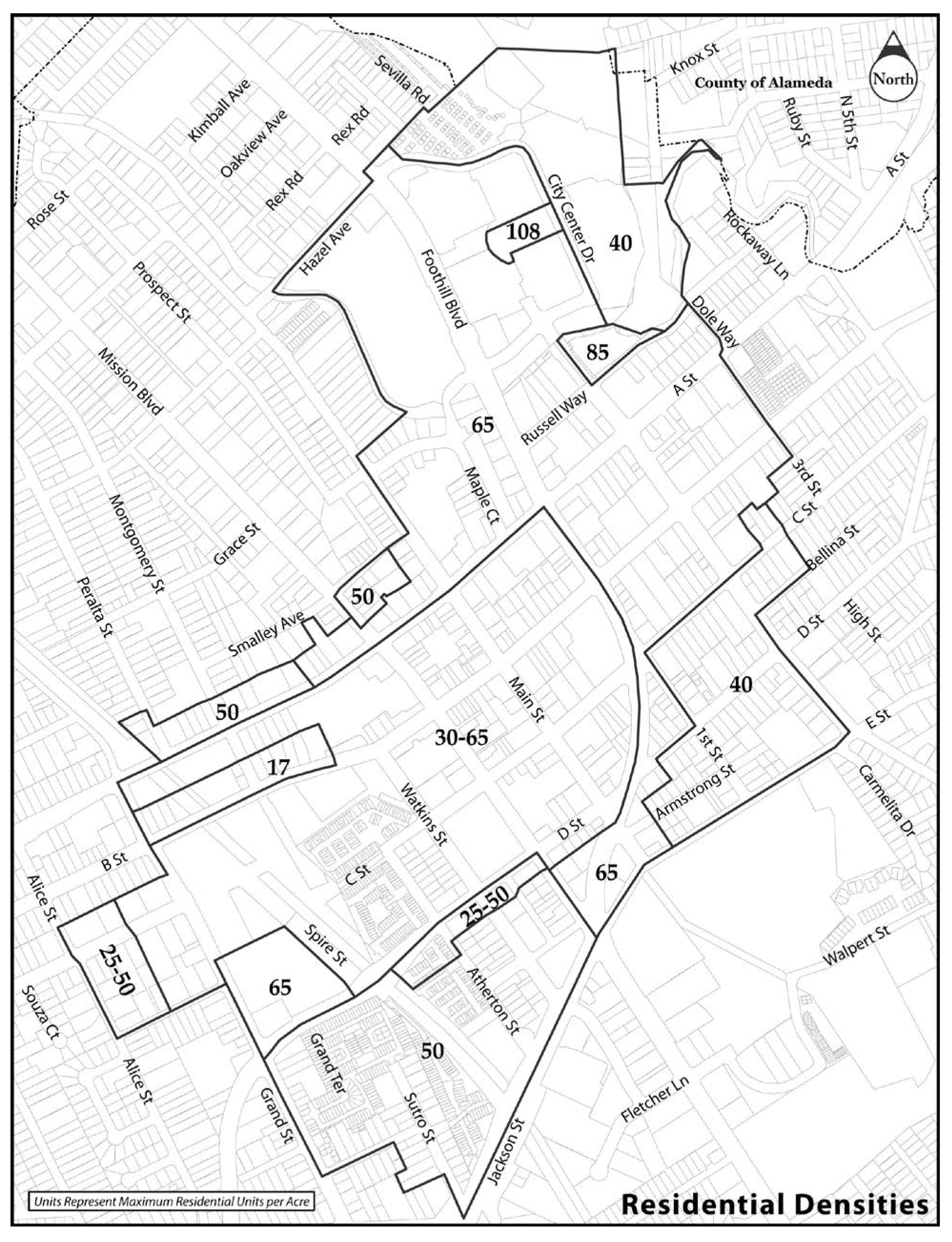 Maximum Residential Density: Densities shall be established in substantial compliance with Downtown Hayward Design Plan, and as indicated herein.