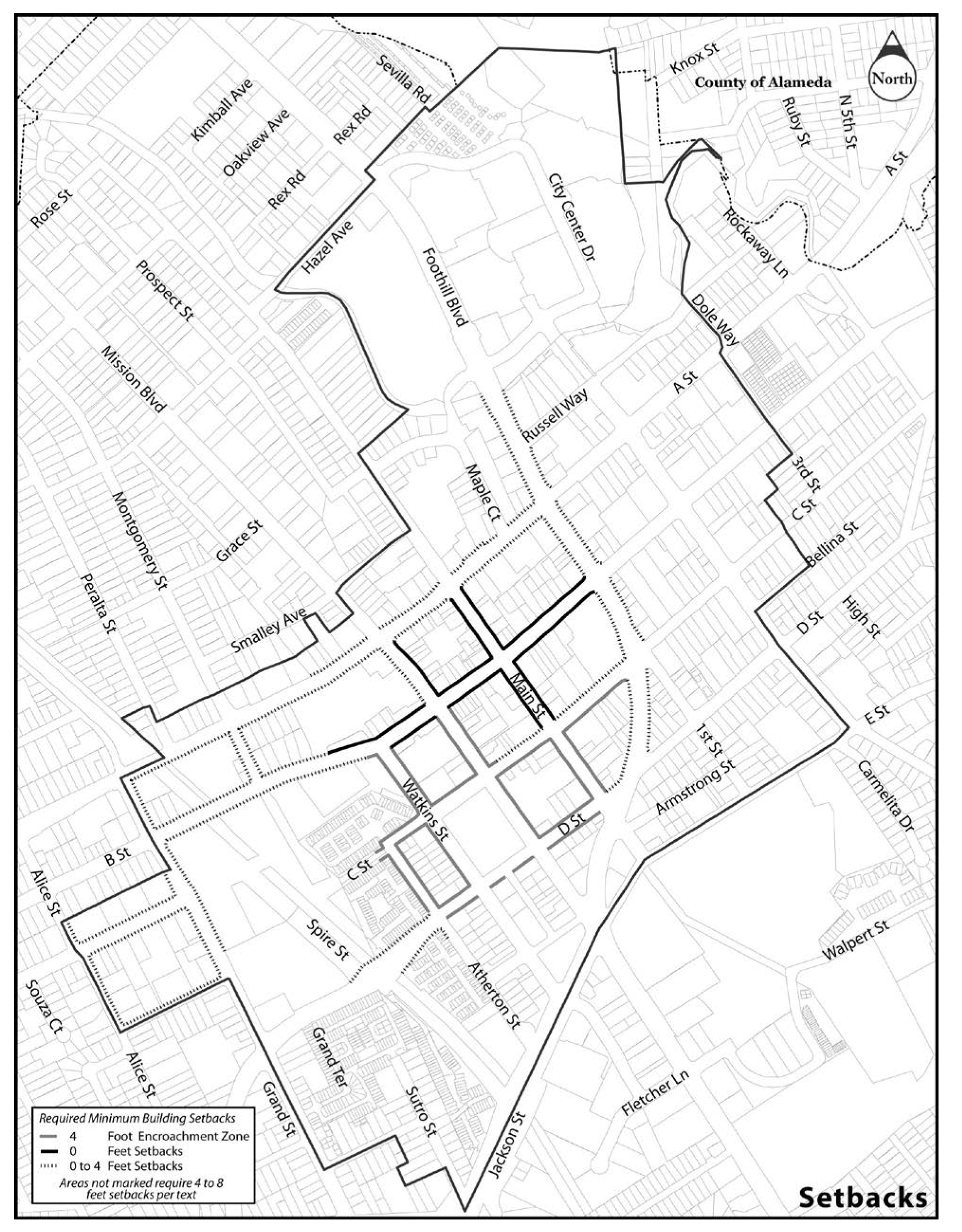 Minimum Front Yard: In substantial compliance with Downtown Hayward Design Plan, and as indicated herein.