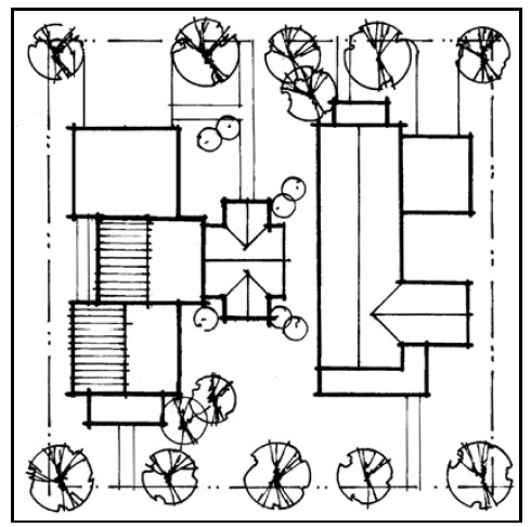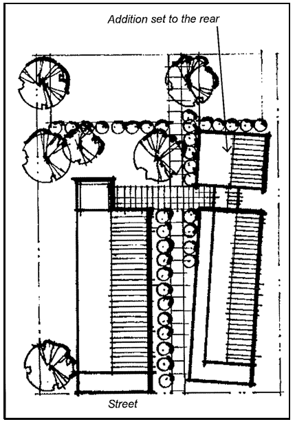 Consider using a courtyard as a transitional element between buildings.