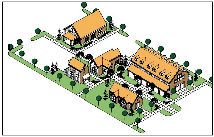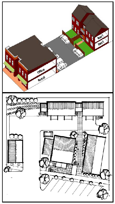 The Mixed Use Rural Type is a cousin of the Traditional Rural Type, but is somewhat larger. It has two stories and may be designed for a mix of commercial and residential uses.