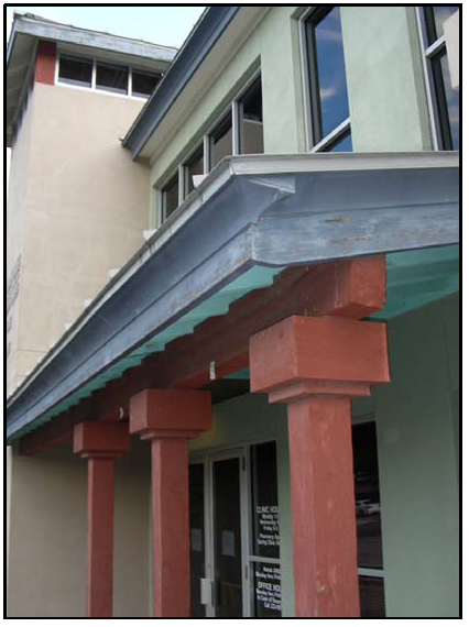 Porch elements are strongly encouraged to provide shade, to reflect traditional building scales, and to provide a sense of entry and visual interest. Porch elements should be similar to those seen traditionally.