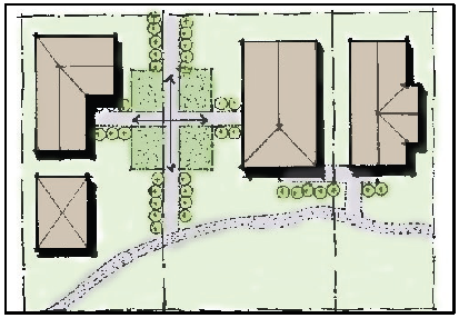 Maintain the character of the rural road edge by sharing access and drives between two or more properties when possible.