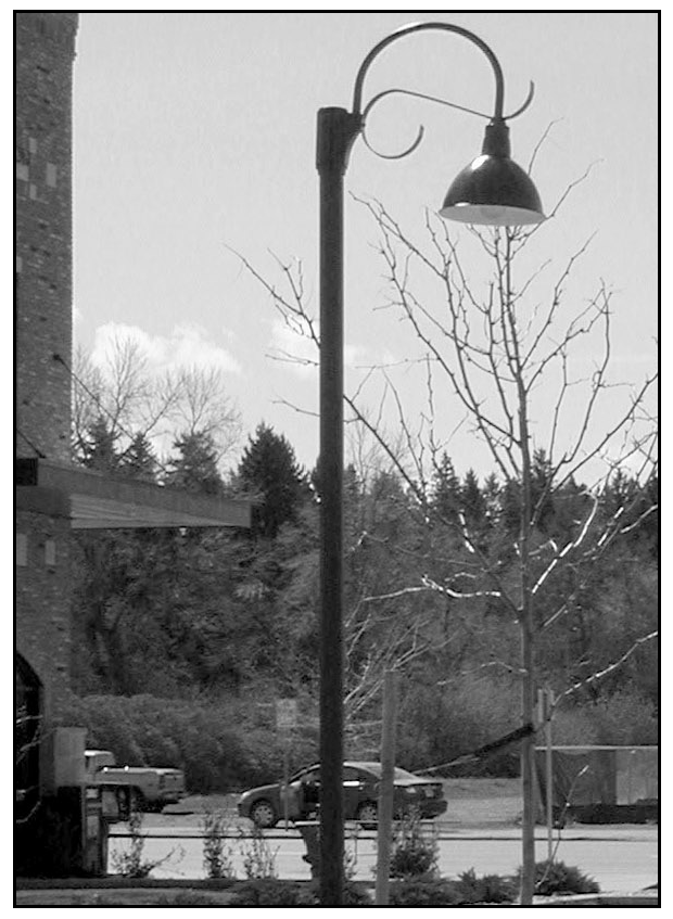 Exterior lighting shall be full cutoff in order to preserve the rural character and protect the view of the night sky. Street lights should be placed randomly to avoid an urban appearance; however, street lights should still provide adequate lighting at street intersections and along public walkways. Outdoor site lighting may be installed to illuminate walkways and outdoor use areas, and lights may be used to illuminate signs and building entrances.