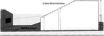 A no build envelope shall be established for every one foot in building height, the structure shall step back at least two feet where adjacent to an existing single-story home. The measurement shall begin at the rear or adjacent property line.