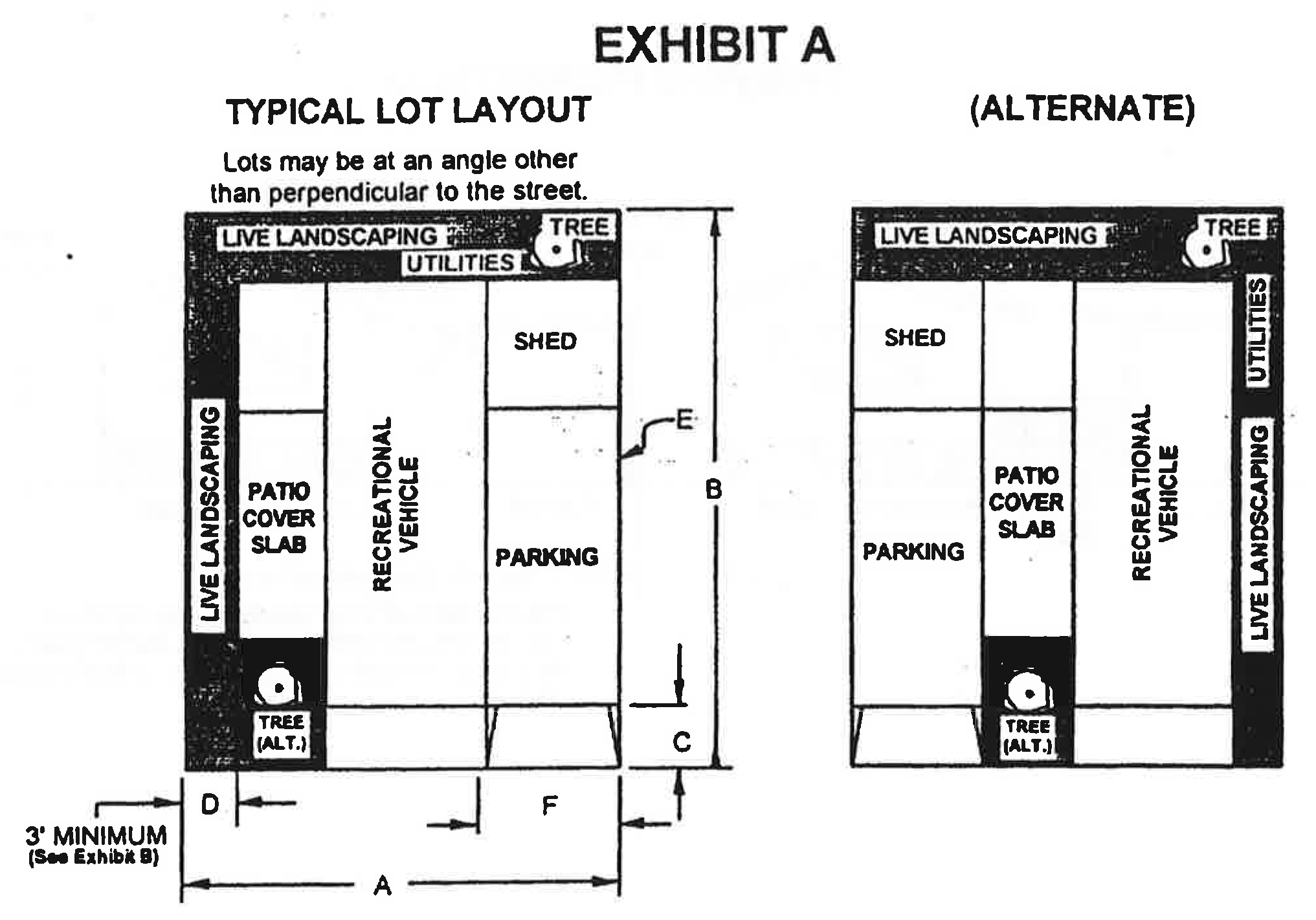 Each dwelling lot and structures and vehicles thereon in a travel trailer planned development shall be in compliance with exhibit A and exhibit B of this section.