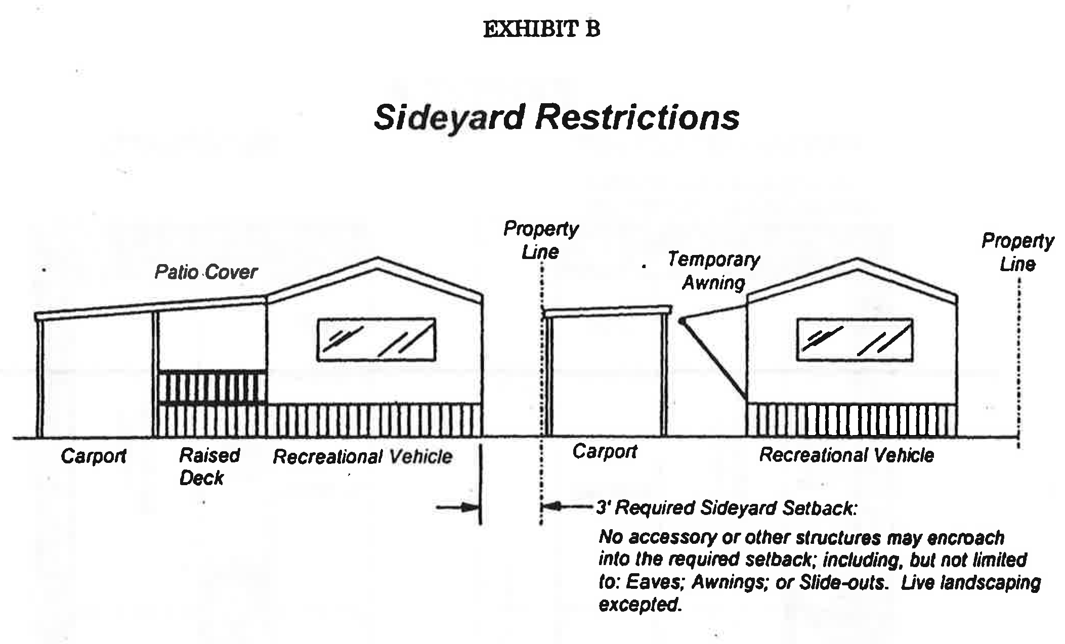 *A freestanding carport may be erected on a lot line, provided that such a carport is constructed of aluminum or aluminum alloy and provided that there is a minimum of three feet clearance from a travel trailer or any other structure on adjacent lots.