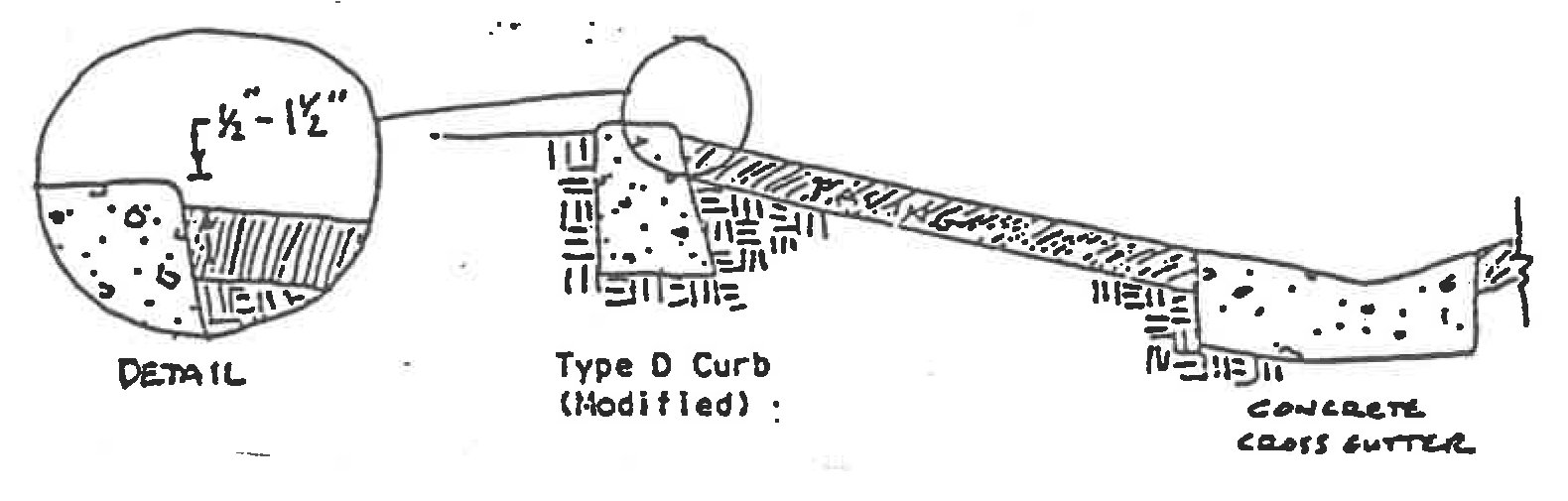 Modified type D curb, inverted street section, Portland cement concrete cross gutter, asphaltic concrete street surface: