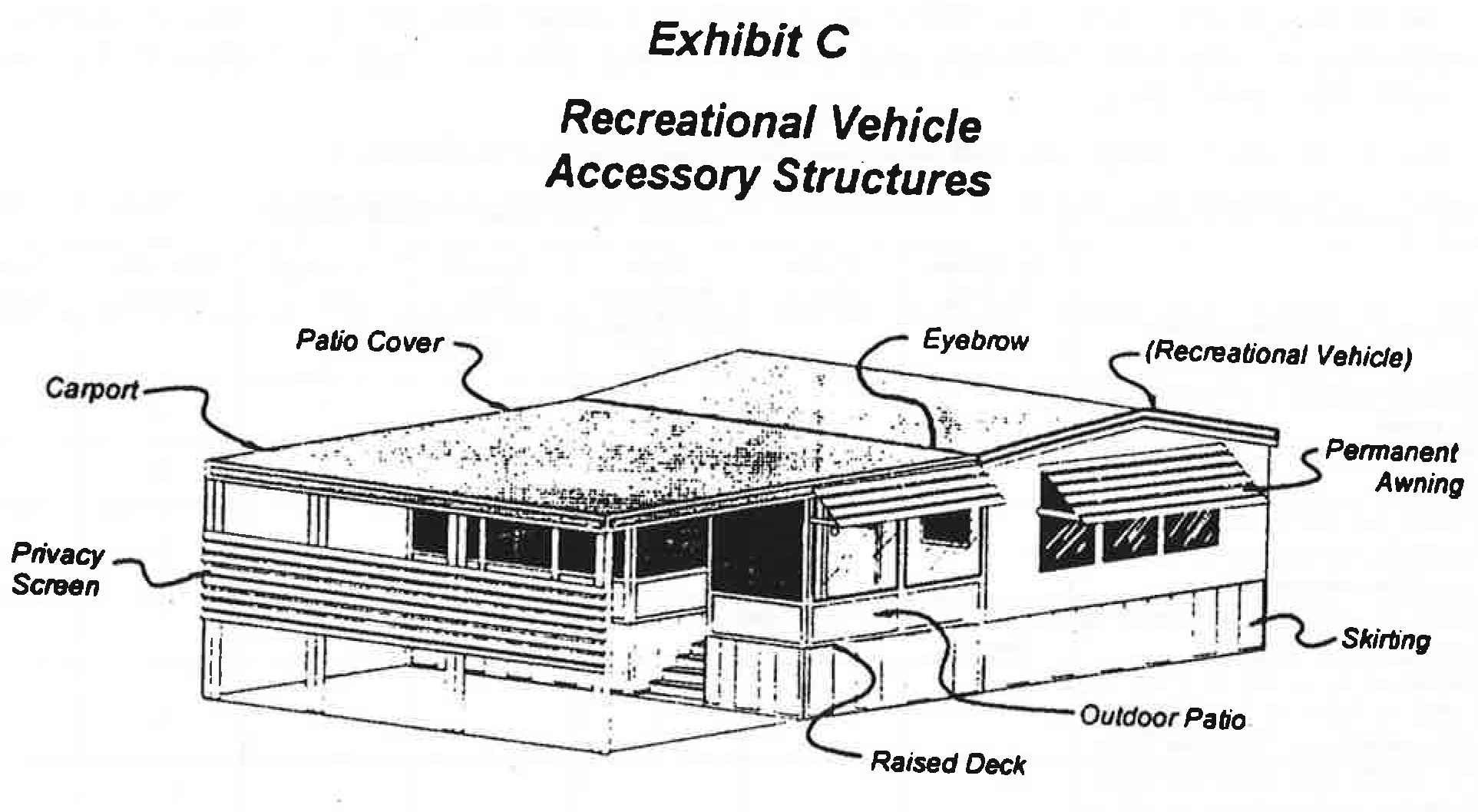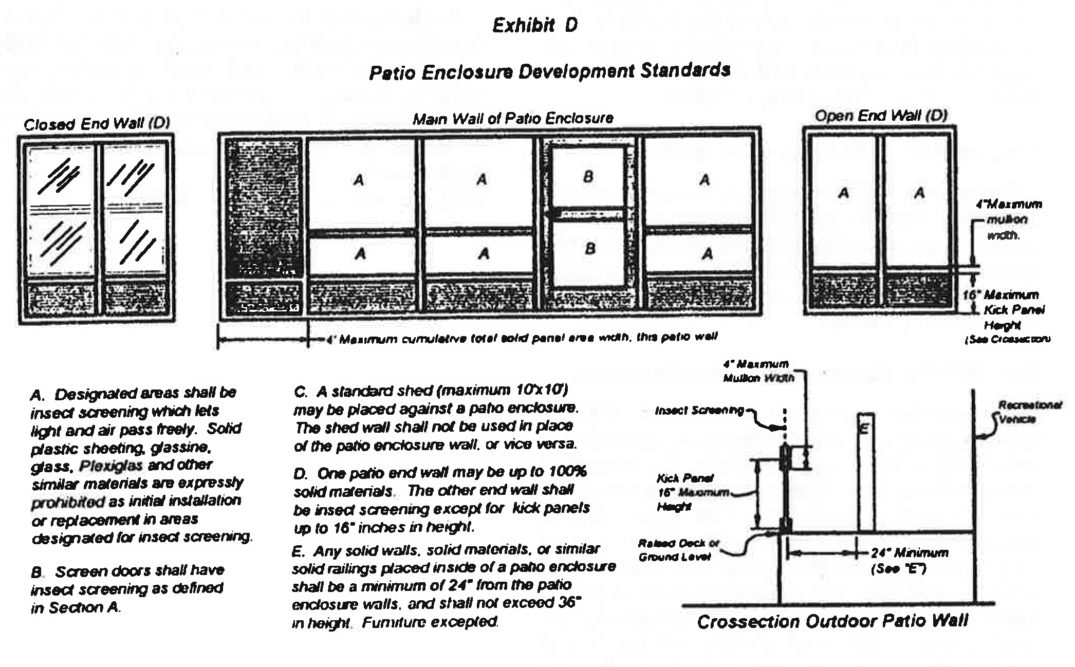 Patio enclosure: An accessory wall system designed to enclose an outdoor patio, as further defined in Exhibit C.