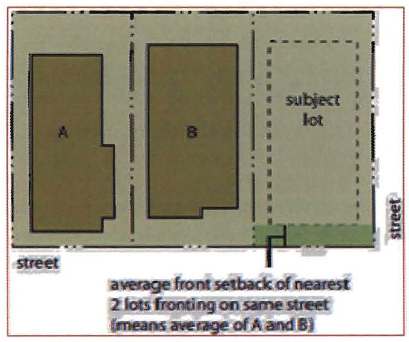 When the subject lot is a corner lot, the average setback will be computed on the basis of the two (2) nearest developed lots that front on the same side of the street as the subject lot;