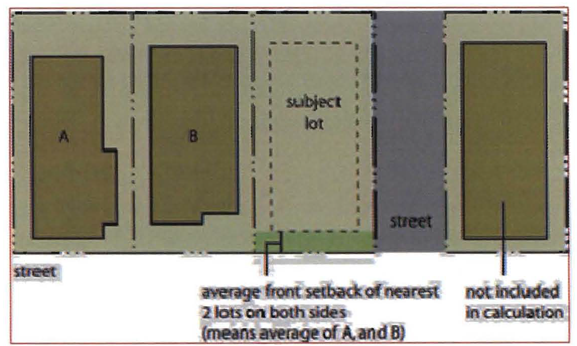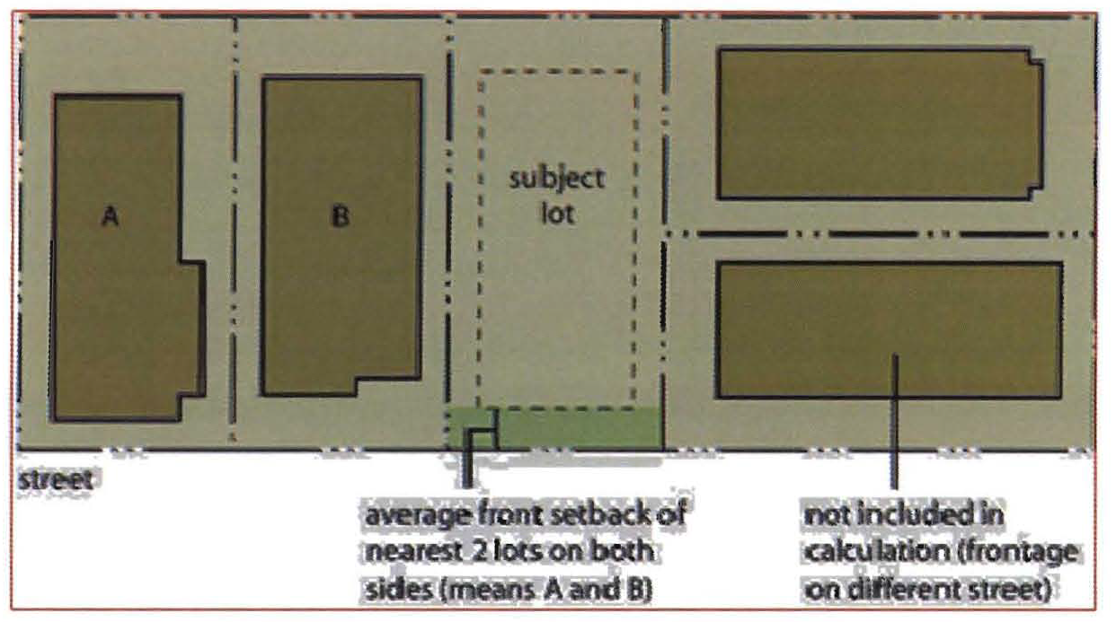 Contextual front setback: Contextual front setbacks shall be as deep as the average front setback that exists on the nearest developed lots on the same block that front on the same side of the street as the subject lot, in accordance with the following rules: