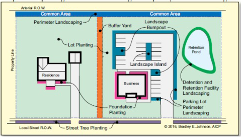 Buffer yard. An area adjacent to front, side, and rear property lines, measured perpendicularly from adjacent property lines and/or right-of-way lines, intended to provide attractive spaces, to reduce the impacts of proposed uses on adjacent property or natural features, and to screen incompatible uses from each other and from the right-of-way. Buffers also help to maintain existing trees or natural vegetation, to block or reduce noise, glare or other emissions, and to maintain privacy. Buffer yards are in addition to (separate from) front, rear or side yard setbacks.