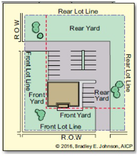 Yard, rear. On a lot without a primary structure, the rear yard shall be the area between the rear lot line and rear yard setback line, between side lot lines. On a lot with a primary structure, the horizontal area from the rear facade of a primary structure to the applicable rear yard setback, ext ending to the applicable side yard setbacks. This definition also applies to the largest storage-based or support-based accessory structure with a permanent foundation on a lot without a primary structure.