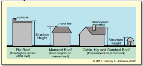 Structure height. The vertical distance measured from the ground level (i.e., average elevation surrounding the structure, not including any artificial mounds or berms) to the highest point of the roof, or top most portion of the structure. Maximum structure height generally allows a structure to have the maximum number of stories plus enough to allow a pitched roof and other architectural features.