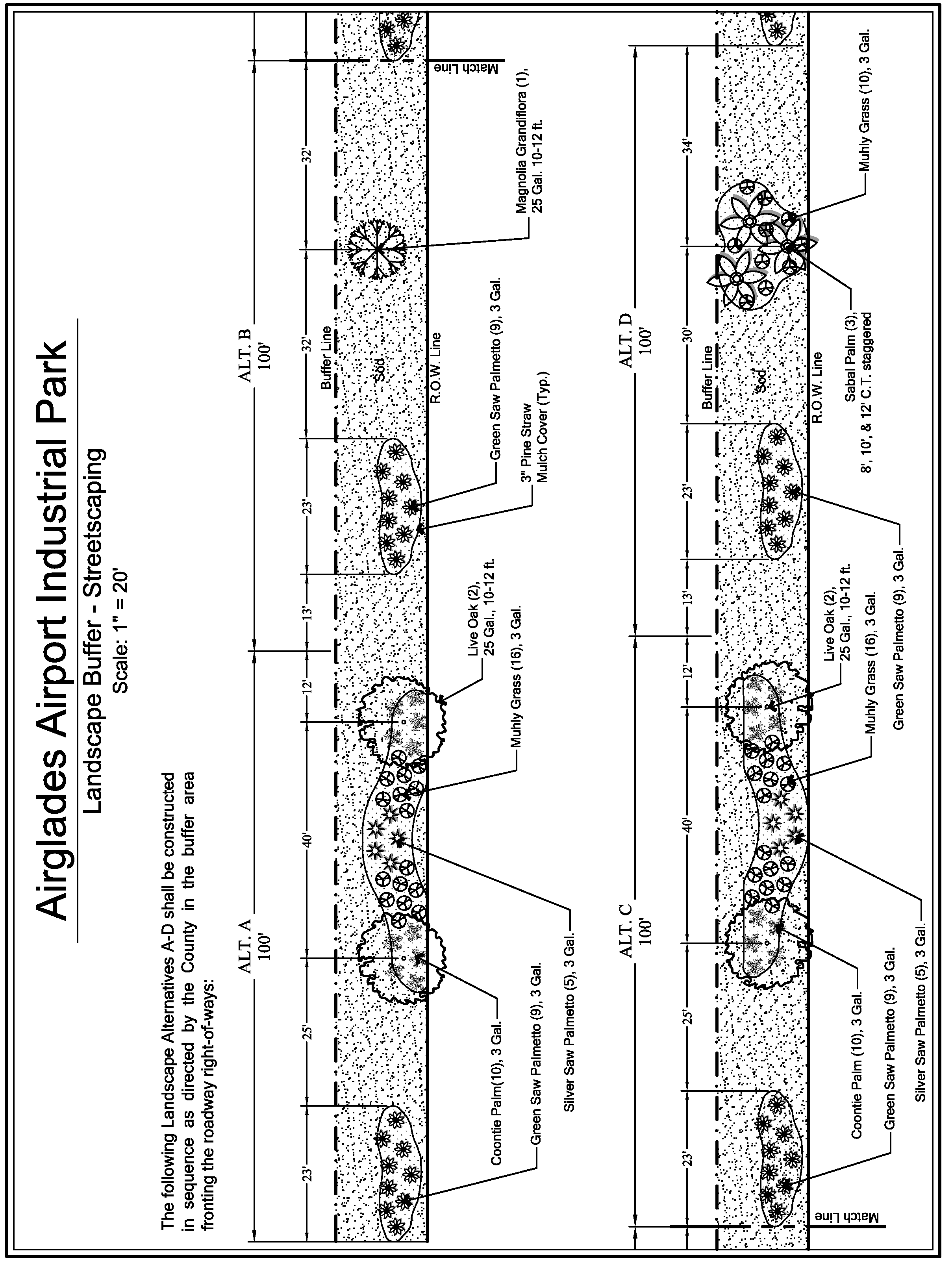 Landscaping shall be provided adjacent to public roads in non-secure areas of the AOPD and shall be installed prior to issuance of a certificate of occupancy. Landscaping shall comply with chapter 1-58, article III of the Hendry County Land Development Code. Any development along Airglades Boulevard will provide landscaping consistent with landscaping requirements set forth in section 1-53-6.17(d)(6)b. of the Hendry County LDC.