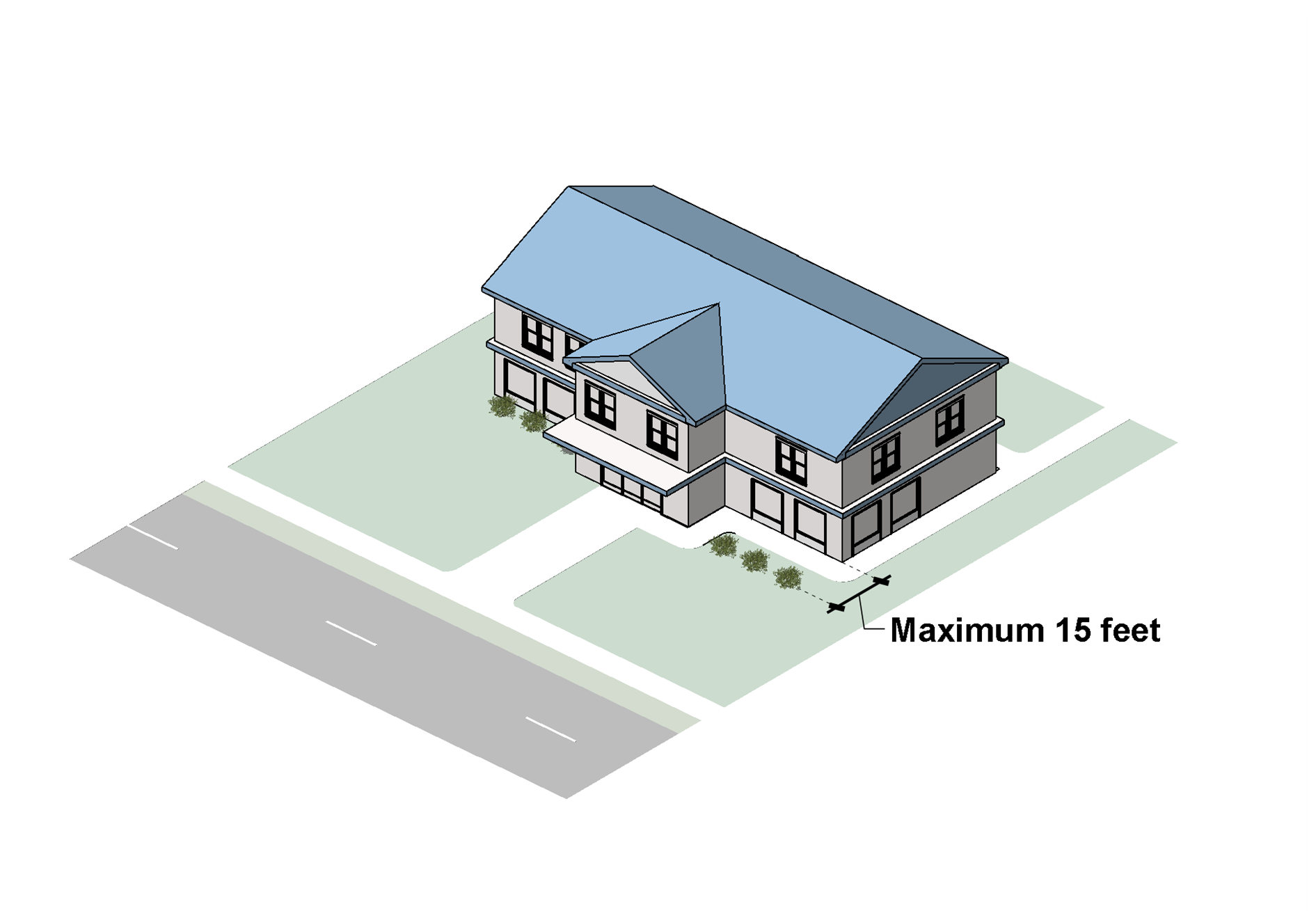 For single-family detached dwellings, the width of the driveway must not exceed 50 percent of the lot width or 30 feet, whichever is less.