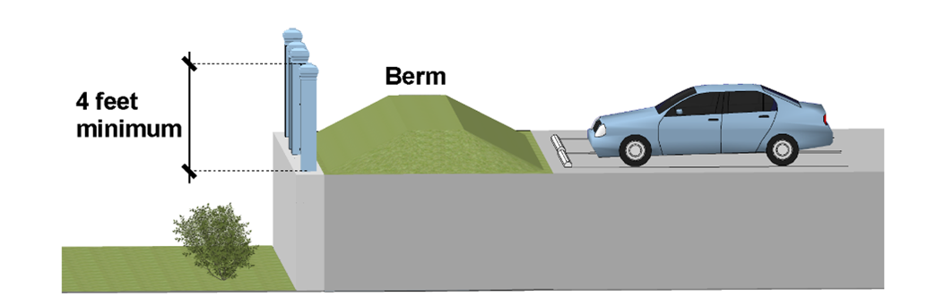 A pervious parking lot surfacing material such as pervious asphalt and concrete, open joint pavers, and reinforced grids made of grass, gravel, or shell may be used for all or part of a parking and loading area subject to the following: