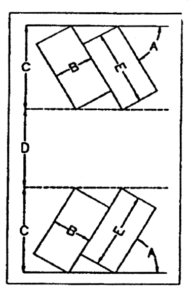 A parking space for an automobile shall have dimensions as specified in the chart and diagram below: