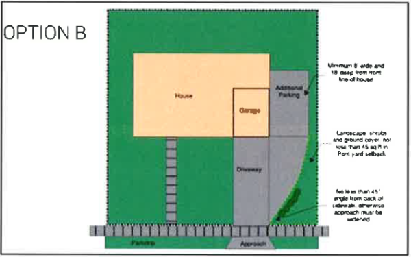 When a front yard is adjacent to the circle of a cul-de-sac, the setback for a main building may be reduced to 22 feet.