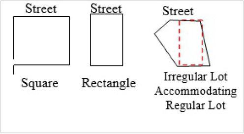 Lot, regular, means any generally square, or rectangular shaped lot or similar to shown below, and any lot that can accommodate a regular shaped lot within it which meets the minimum zone size requirements.