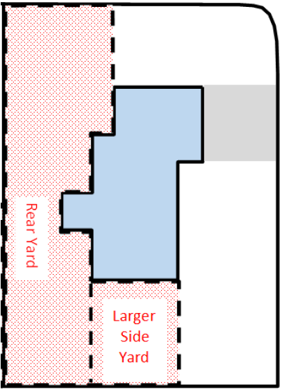 6,001 - 11,000 SF Lot | 25% of rear yard or 75% of footprint of home, whichever is less | ||