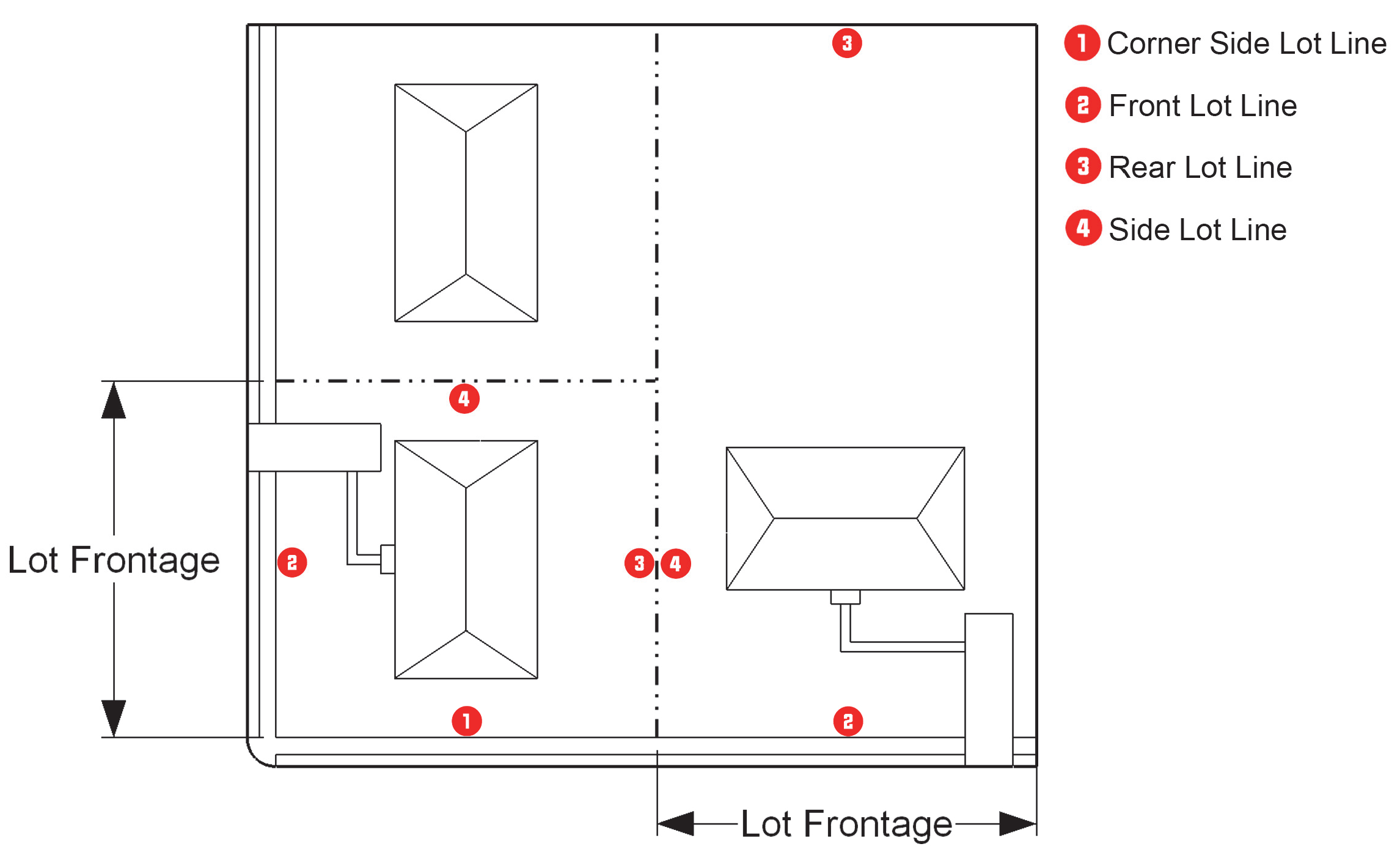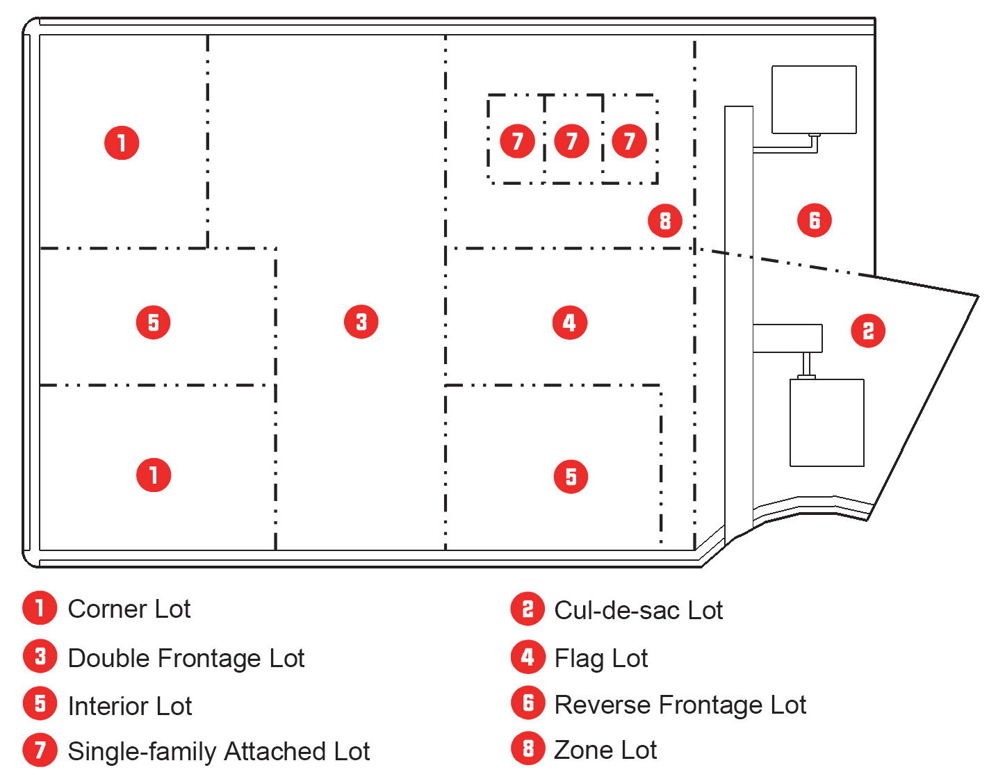 Interior Lot A lot other than a corner lot with only 1 frontage on a street other than an alley.