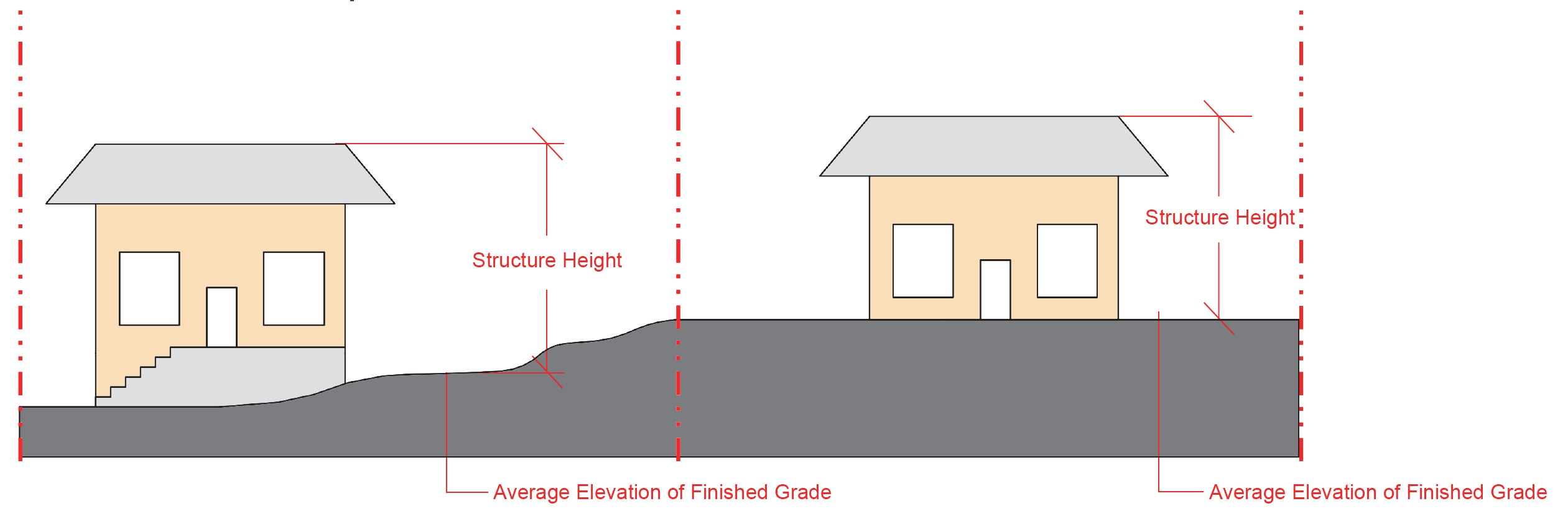 Maximum Building Height The vertical distance measured from the average elevation of the finished grade to the topmost section of the roof.