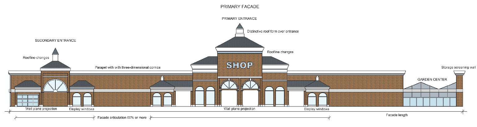 Single Tenant Buildings Distinctive roof forms, towers, gables, roof ridges, peaks, or other features that differ in height by 3 feet or more from the balance of the roof. Outparcels are exempt from this standard.