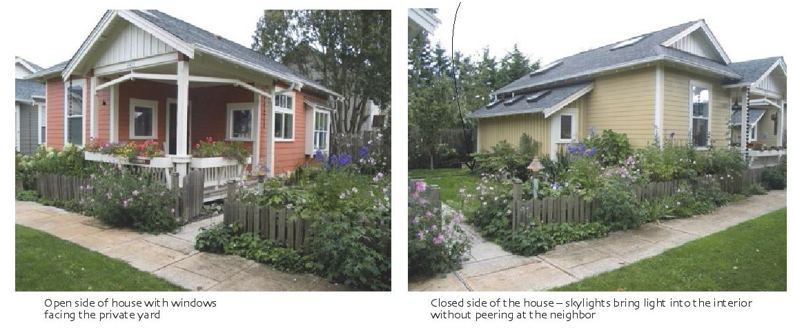 Dwelling Orientation A tiny home dwelling shall face interior common open space or a street. No dwelling shall face a perimeter landscape yard.