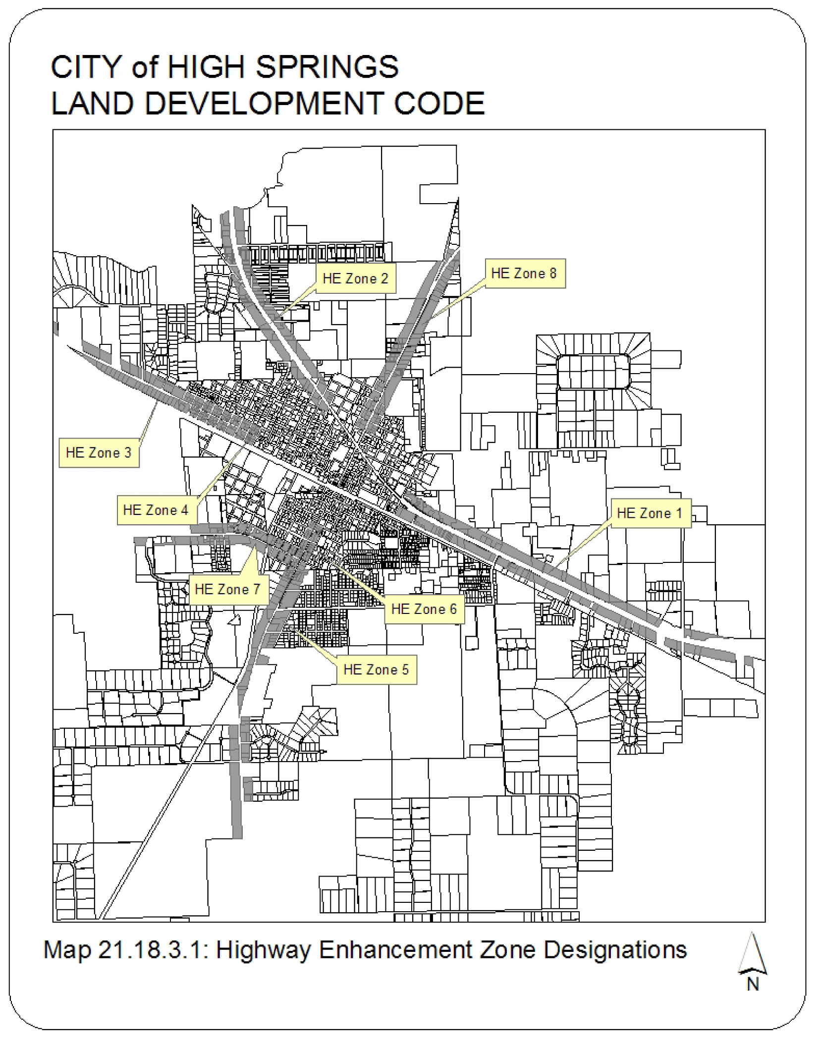 The Highway Enhancement Zone overlay applies to the roads listed below. The Highway Enhancement Zone extends 300 feet from each side of the right-of-way of the highway. Reference Map 21.18.3.1.