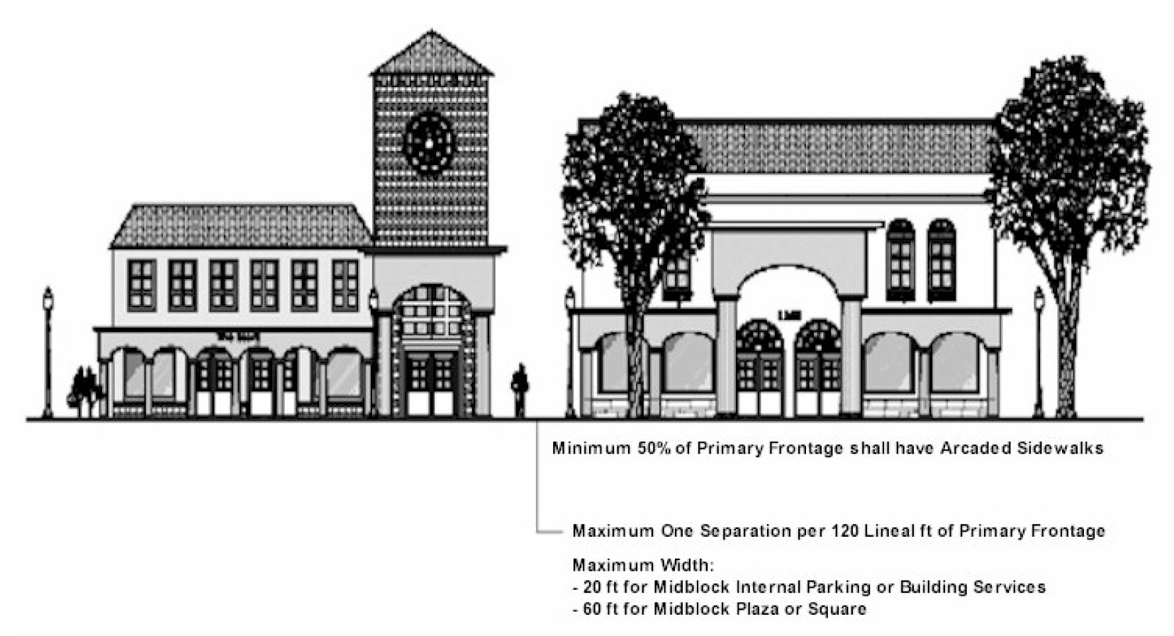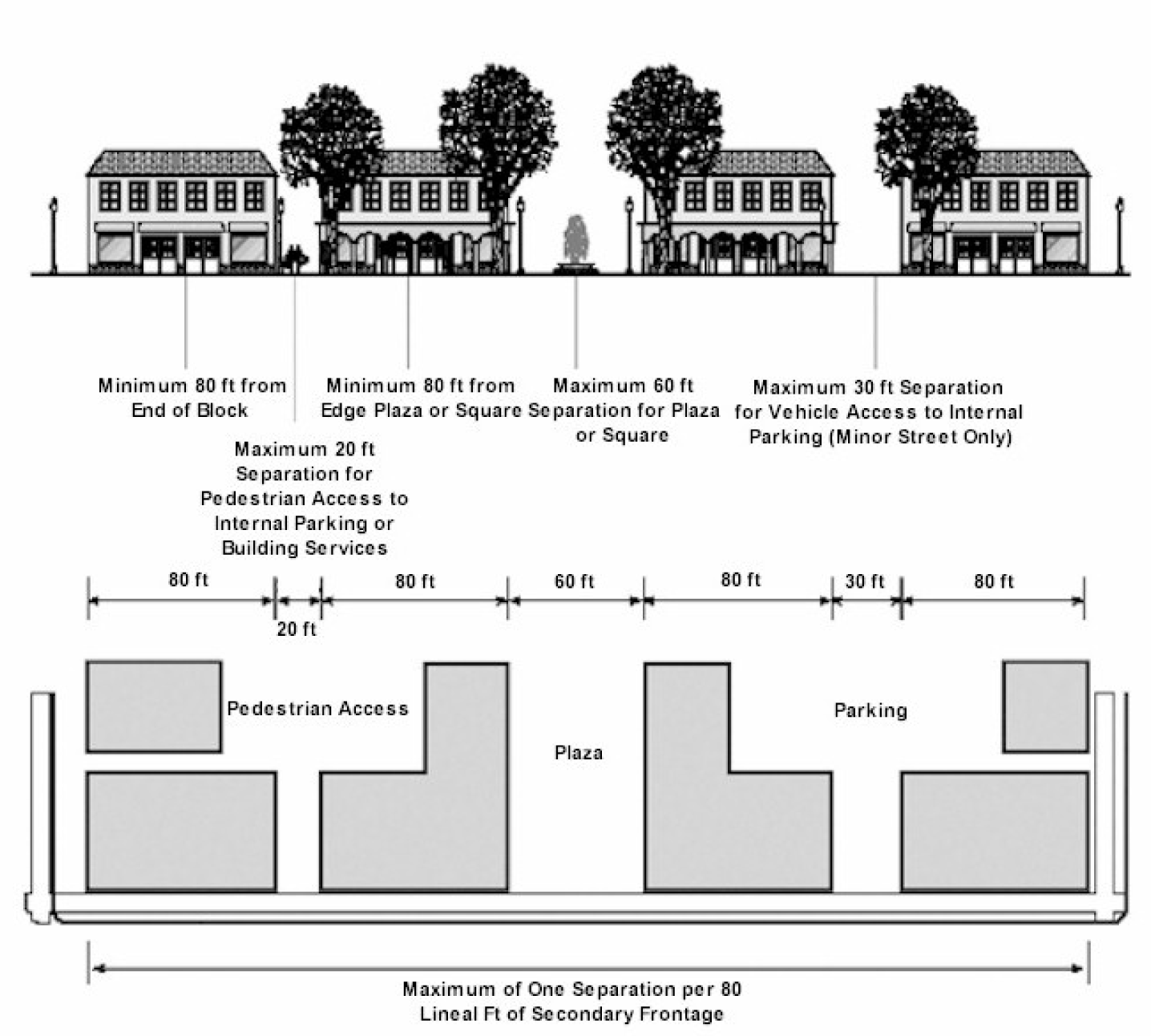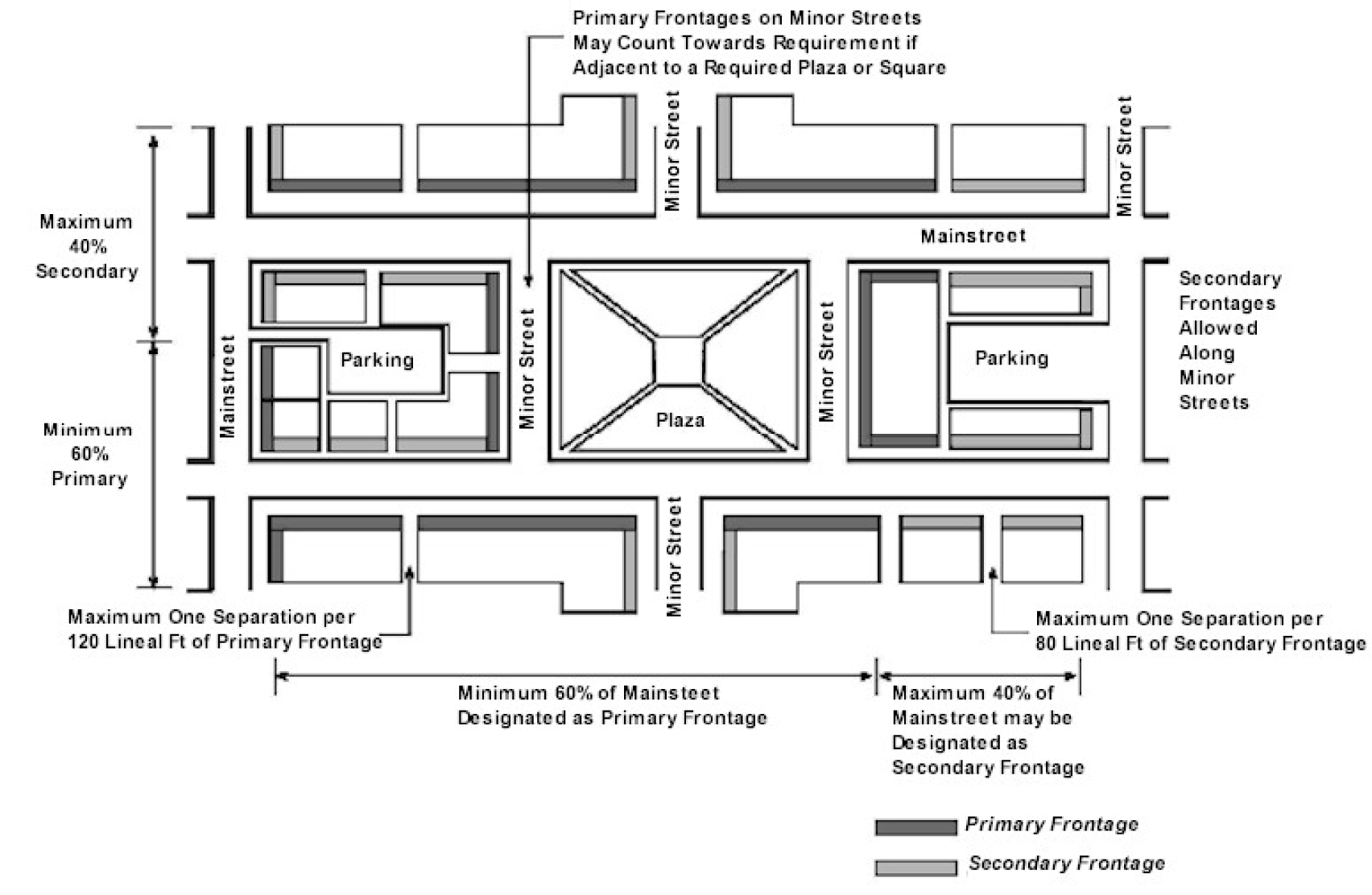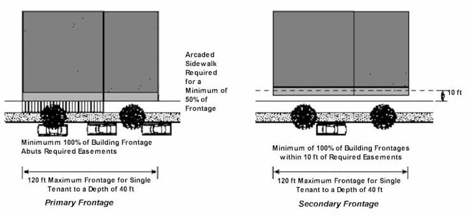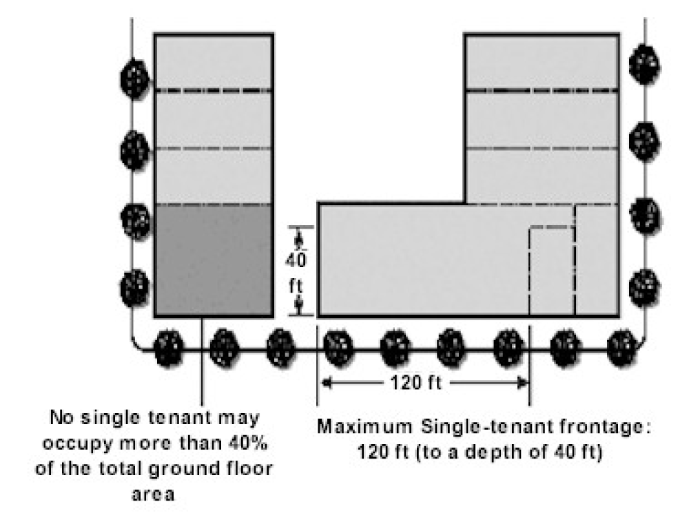 14 No single tenant may occupy more than 120 linear feet of frontage to a depth of 40 ft.
